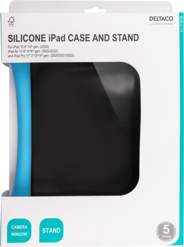 Et slitesterkt mykt deksel for til iPads, laget av silikongummi. De forsterkede kantene absorberer drypp- og fallskader og beskytter nettbrettet mot harde støt. Skulle nettbrettet falle med fronten først, holder de hevede sidene skjermen godt beskyttet mot skade. Det brukervennlige stativet på baksiden lar deg vippe nettbrettet oppreist for filmer og lysbildefremvisninger, eller ligge på et bord for å danne et skrive- og tegnestativ med to justerbare vinkler