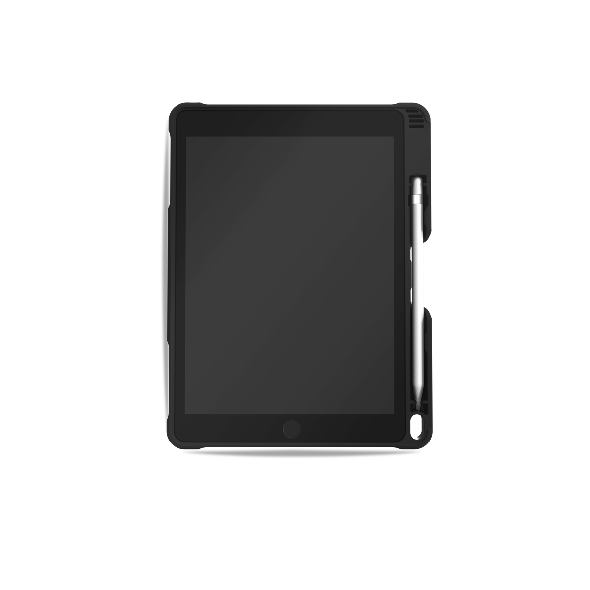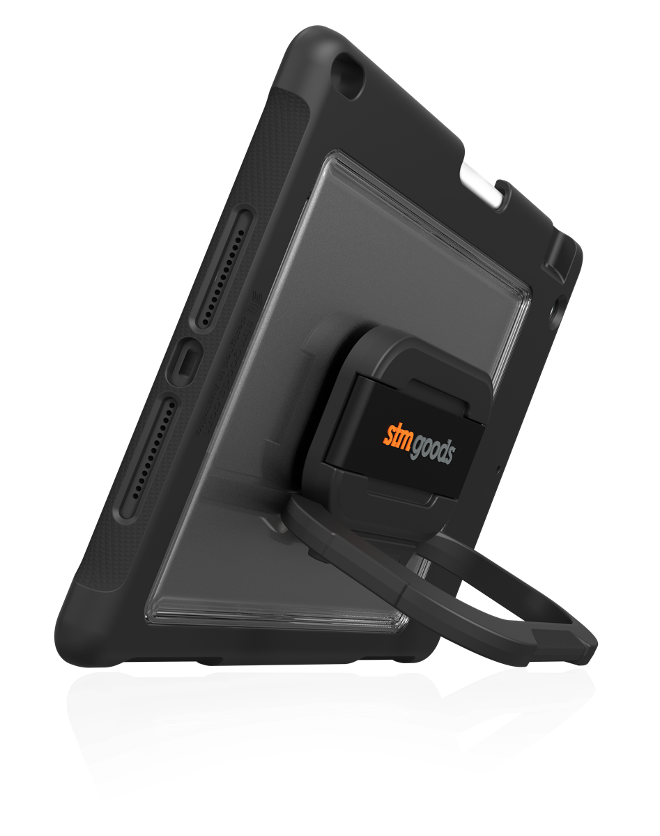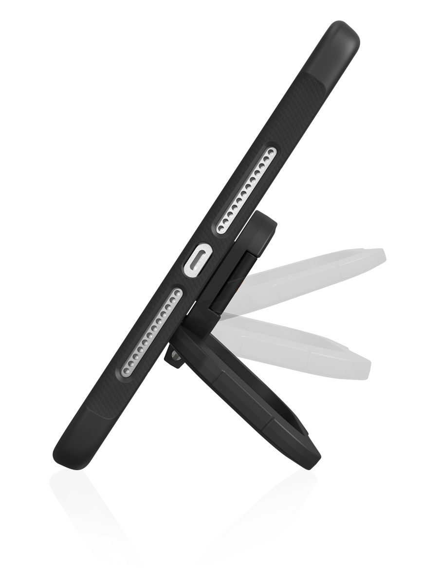 Etuiets klare polykarbonat-bakside viser frem iPad-en samtidig som den beskytter mot riper og støt. I tillegg har etuiet egen oppbevaring for Apple Pencil eller Logitech Crayon, slik at du alltid har tilbehøret klart. Alle porter og knapper er lett tilgjengelige, og designet er laget for høy komfort og effektivitet, enten du jobber på kontoret, i restaurant, helsevesenet eller detaljhandel.