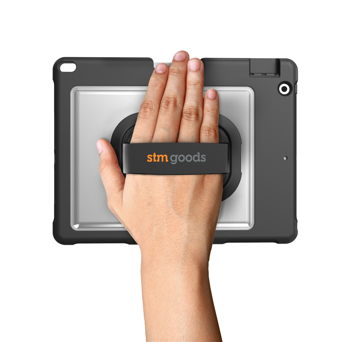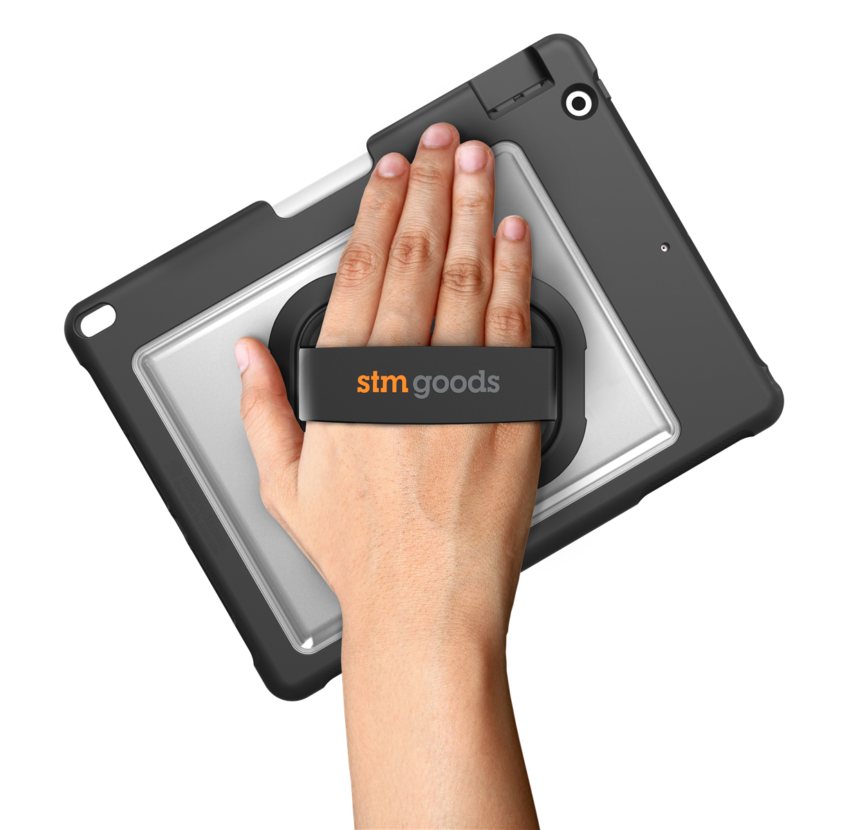 STM Dux Swivel til iPad 9., 8. og 7. gen (sort) er et gjennomtenkt etui som kombinerer robust beskyttelse med smart funksjonalitet. Med sin 360-graders roterende stander får du fleksible visnings- og skrivevinkler, mens den elastiske håndstroppen gir trygg bruk i hånden – ideelt for både privat og profesjonelt bruk.
