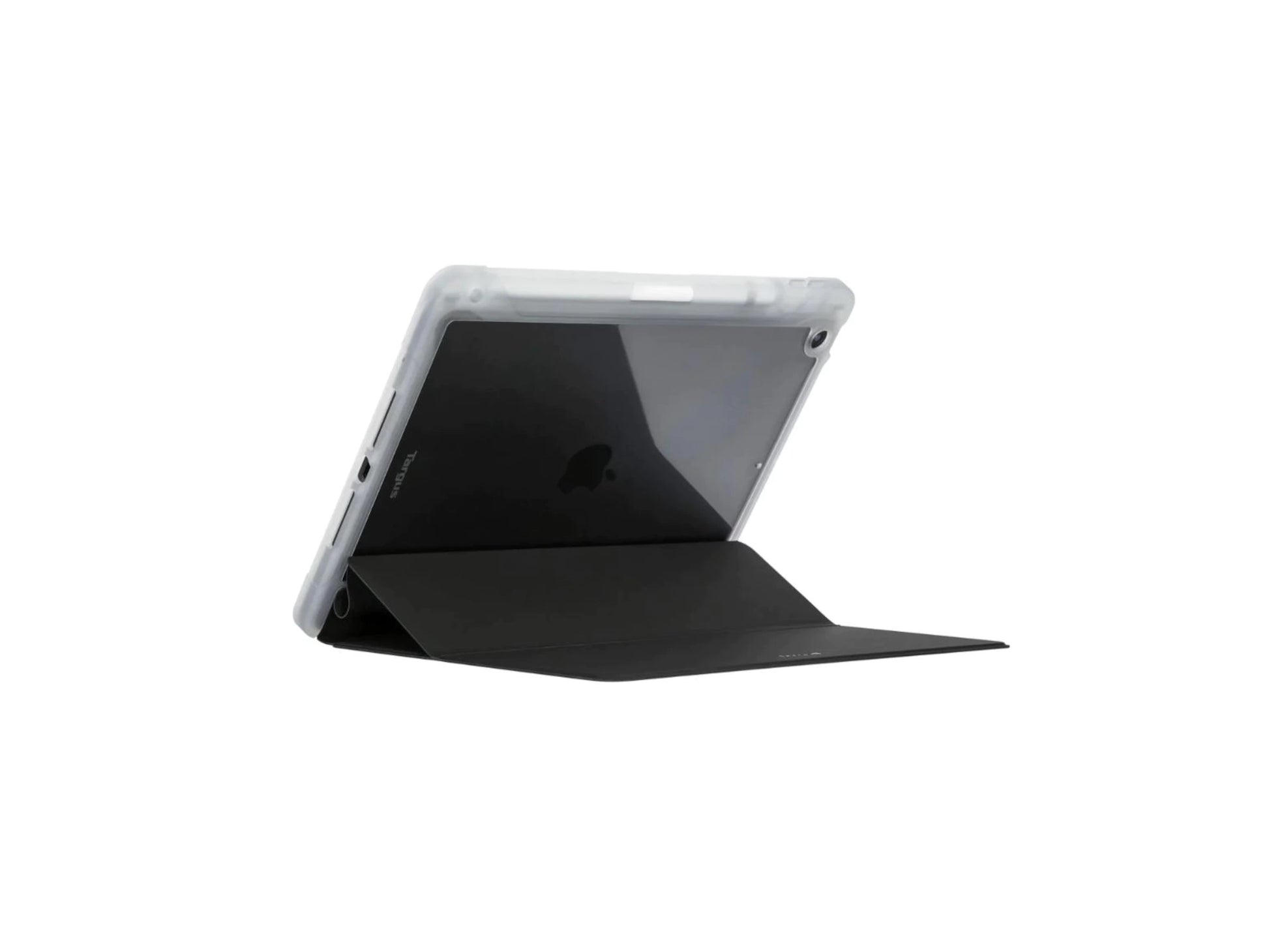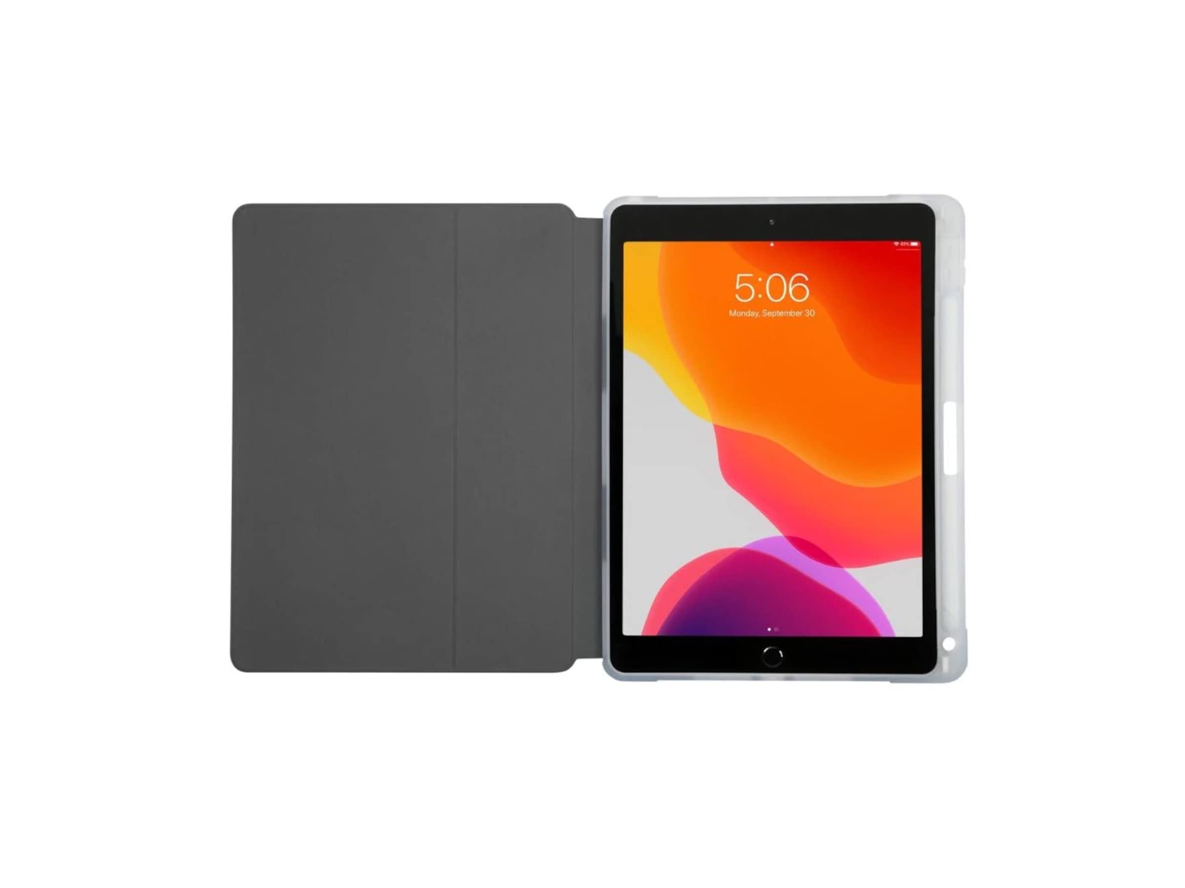 Med DefenseGuard™ antimikrobiell beskyttelse holdes overflaten kontinuerlig renere, samtidig som det todelte TPU-skallet gir ekstra robusthet mot støt og riper. Den integrerte penneholderen sørger for trygg oppbevaring av Apple Pencil, og det vippbare frontlokket gir flere praktiske visningsvinkler.