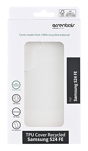 Essentials Galaxy S24 FE Silikondeksel gjennomsiktig kombinerer effektiv beskyttelse med et bærekraftig design. Dekselet er laget av 100 % resirkulerte materialer og gir et mykt og behagelig grep, samtidig som det bevarer telefonens originale utseende.