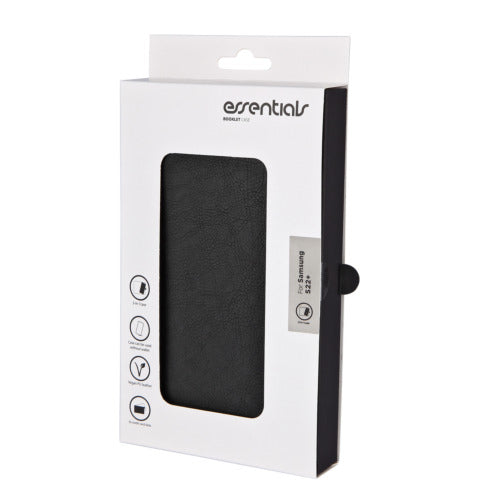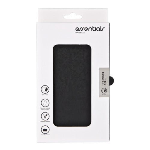 Essentials Samsung Galaxy S22 Plus Lommebokdeksel kombinerer funksjonalitet, stil og beskyttelse i ett. Dekselet er laget av slitesterkt materiale med et klassisk utseende, og gir både sikkerhet for mobilen din og praktisk lagring for hverdagen.