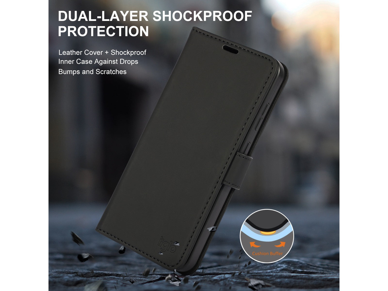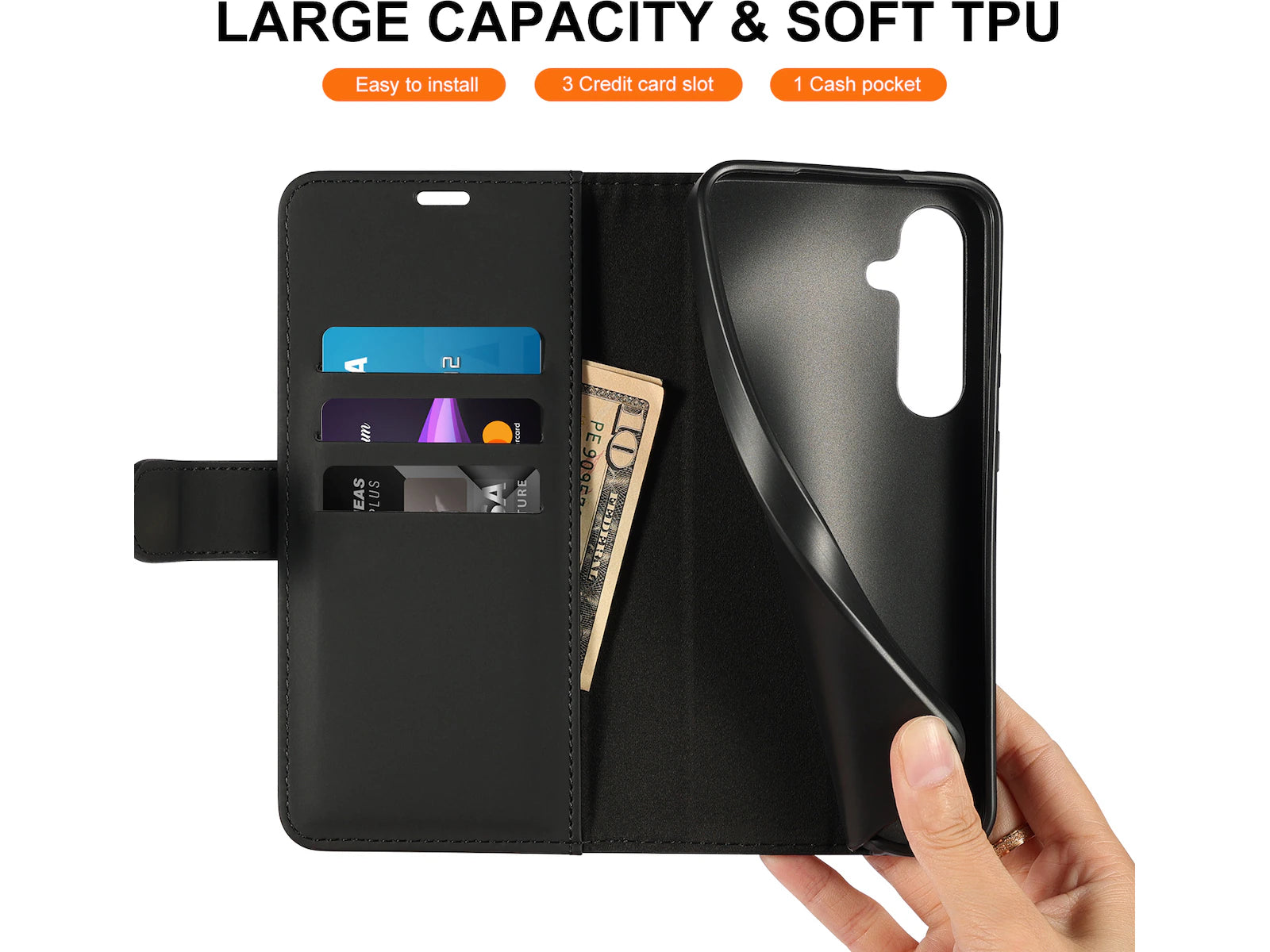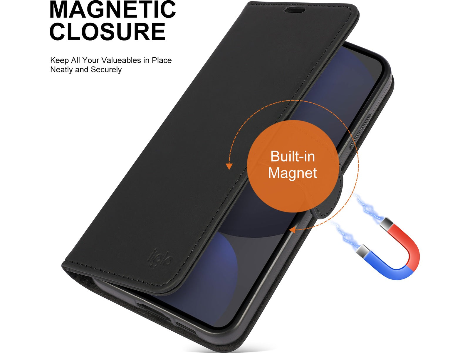 iiglo Galaxy S24 FE Lommebokdeksel Sort kombinerer praktisk funksjonalitet med et stilrent, minimalistisk design. Laget av premium PU-skinn, gir dette dekselet myk, men robust beskyttelse mot daglig slitasje, riper og mindre støt.
