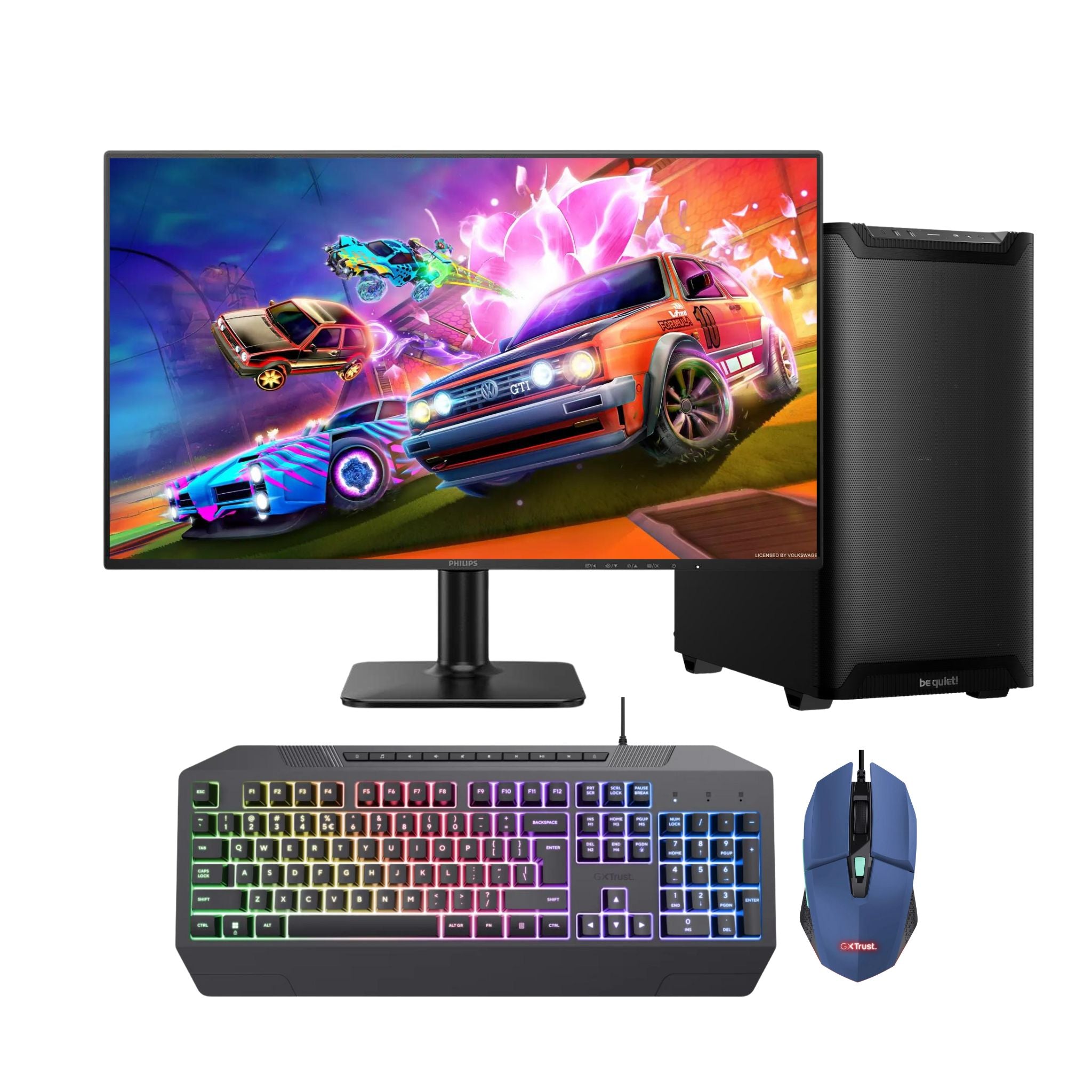 Den medfølgende Philips 24" Full HD-skjermen (120 Hz / 4 ms) gir skarpe bilder og silkemyke bevegelser. Sammen med Trust GXT 836 Evocx gaming tastatur og Trust GXT 109 Felox Kablet Gamingmus Blå får du både presisjon og stil, uansett spilltype.