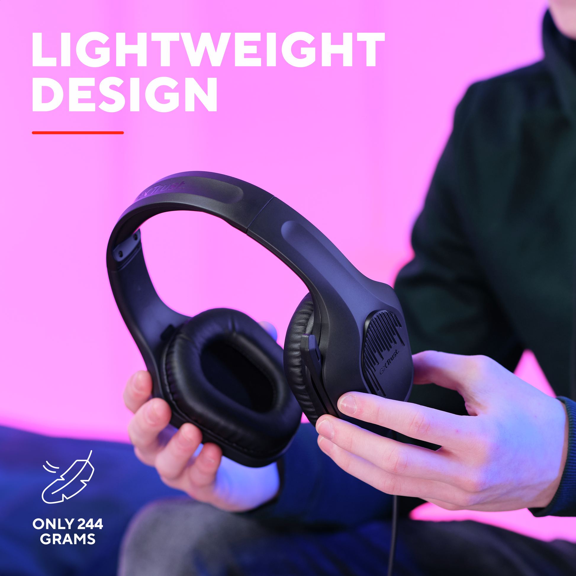 TRUST GXT 415 ZIROX Gaming Headset kombinerer kraftig lyd med et ultralett og komfortabelt design på kun 244 gram. Dette over-ear headsettet er utviklet for lange gamingøkter og gir deg krystallklar lydopplevelse, enten du spiller på PC, PlayStation, Xbox eller Nintendo Switch.