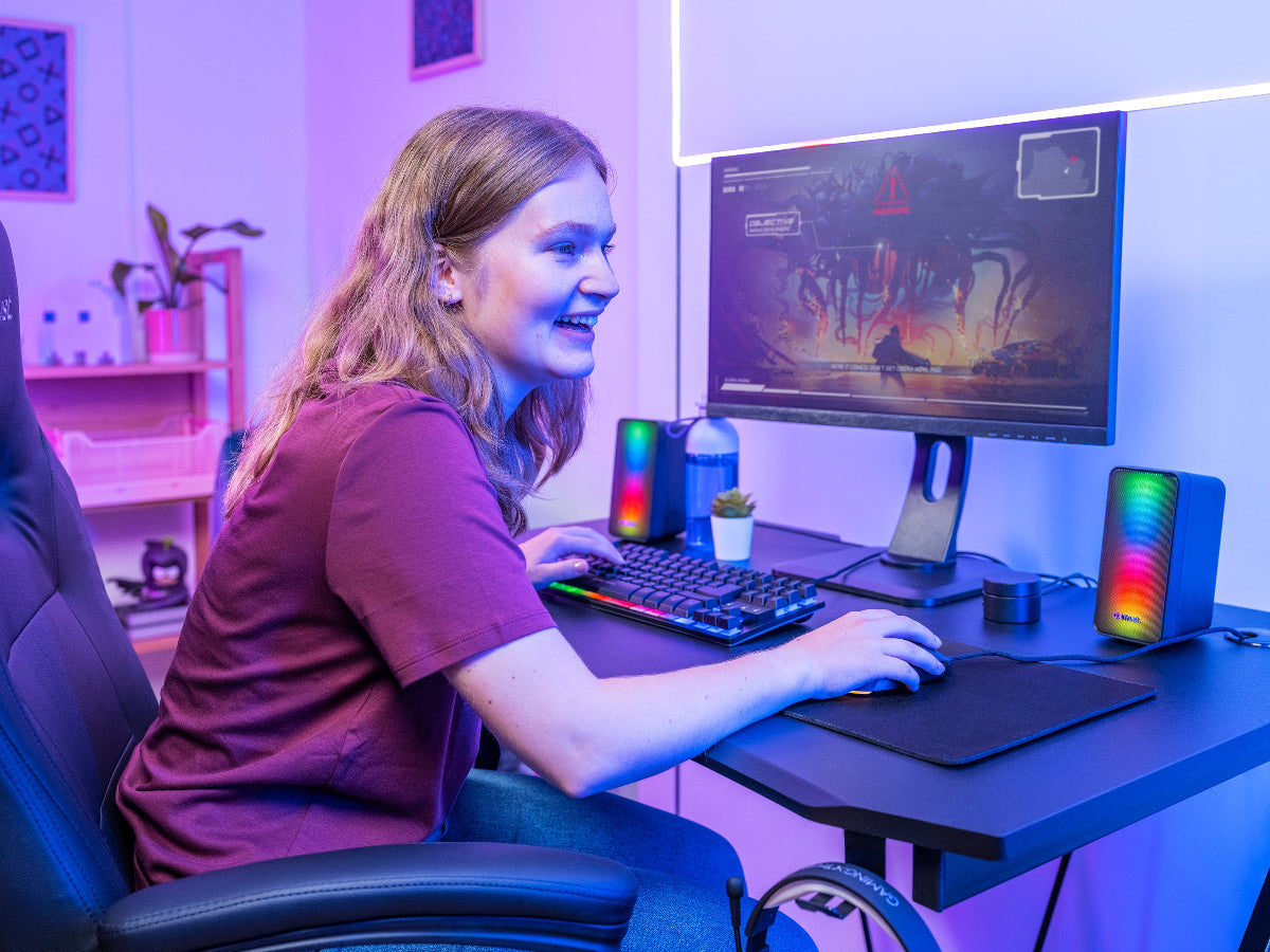 Trust GXT 611 Wezz er det perfekte valget for deg som vil ha både god lyd og visuell effekt på gaming-setuppet eller skrivebordet. Enkel å sette opp, stilig å se på, og kraftig nok til å gi deg en oppslukende lydopplevelse.